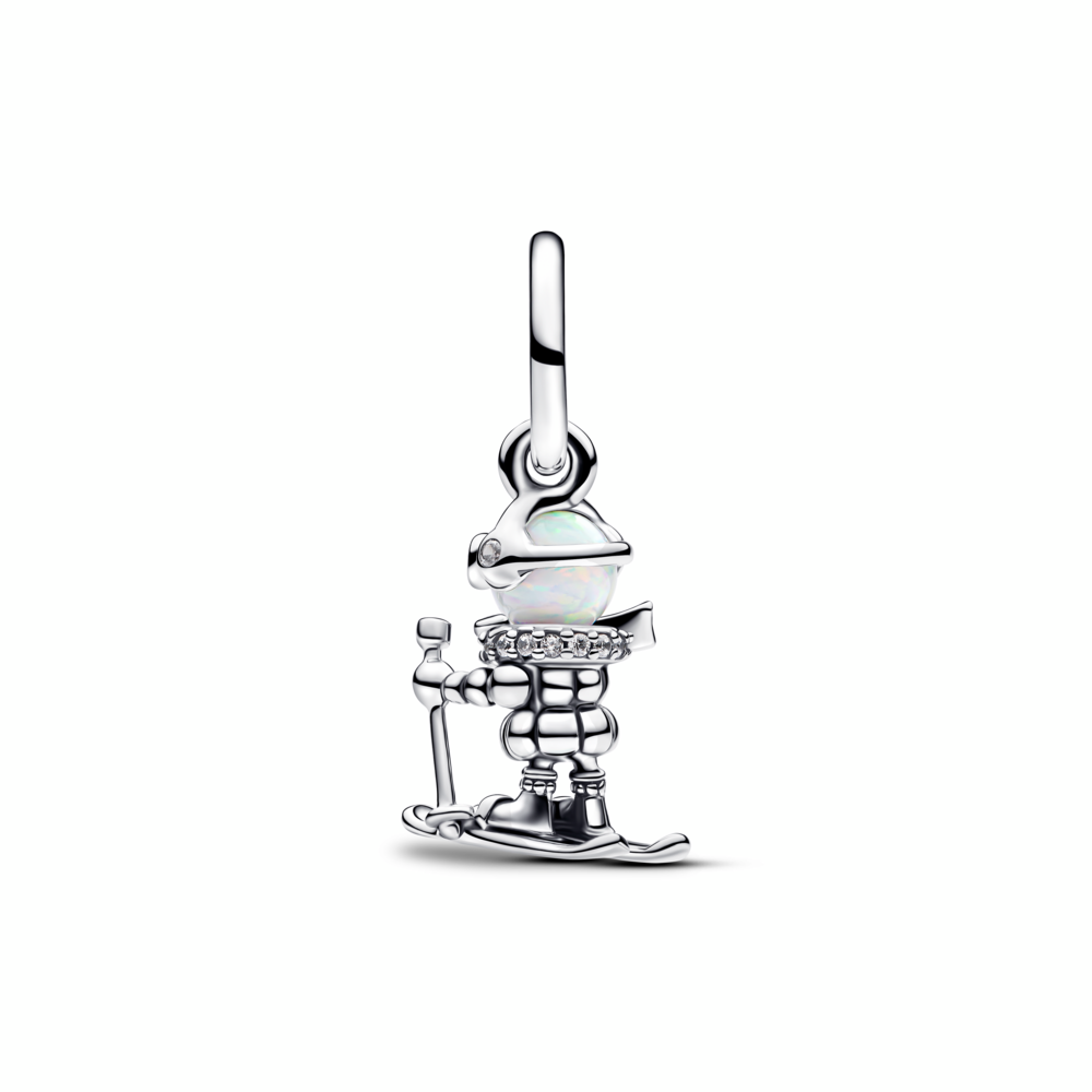 Skier sterling silver dangle with white lab-created opal and clear cubic zirconia