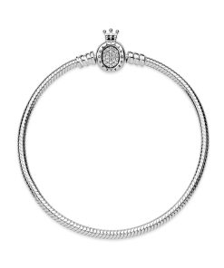 Give your fairy tale a new beginning with the iconic Pandora Moments snake chain bracelet with crown O clasp. Made from Pandora’s instantly recognisable sterling silver snake chain. the bracelet features a Pandora crown O clasp with a sparkling pavé centre featuring clear cubic zirconia for that extra bit of sparkle. Perfect for new and long-time Pandora fans. the bracelet is ready and waiting to be styled with your favourite charms.