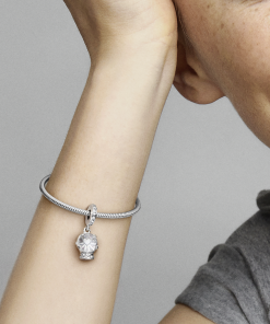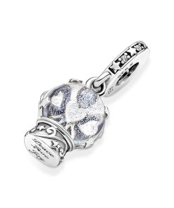 Carry a Christmas guardian angel always with the Snow Globe Angel Dangle Charm. Hand-finished in sterling silver. the dangle charm features a transparent Murano glitter-filled glass globe. engraved with Peace Love Joy to remind you of the true meaning of Christmas. Inside the globe is a delicate snow angel with a heart-shaped body and cut-out heart wings that radiates love. It makes a meaningful gift and a divine edition to any look.