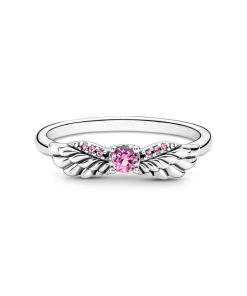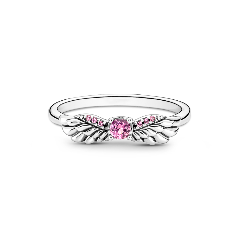 Add this heaven-sent ring to your everyday stacks. Our Sparkling Angel Wings Ring will inspire you to spread your wings and shine. Symbolising protection and safety. this sterling silver ring is set with a brilliant-cut pink crystal for an extra pop of colour. Wear it on its own for a subtle statement. or stack it up with more of your favourites for a silver ring stack that shines.
