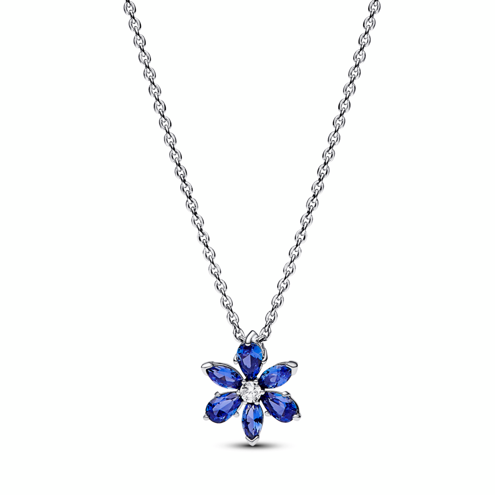 Herbarium cluster sterling silver collier with princess blue crystal and clear cubic zirconia