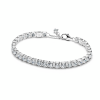 The daisy chain got a sparkling upgrade with this sterling silver flower bracelet. Hand-finished waved bars that look like daisy flower stems are complemented by evenly dotted sparkling flowers featuring clear cubic zirconia details. Thanks to the links. the bracelet moves as you do and adds a touch of spring to your look. Inspired by the strength and resilience of the daisy flower. this daisy bracelet reminds you to be free and stay true to who you are.