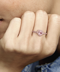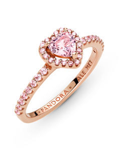 Add a sophisticated touch to your look with the Sparkling Elevated Heart Ring. The ring draws inspiration from the classic Pandora Timeless collection. Hand-finished in 14k rose gold unique metal blend. this piece features a pink heart-shaped central. elevated stone. Clear cubic zirconia create the halo and decorate half of the ring band. with the Pandora logo inside the shank. Stack this ring with hand-finished styles in sterling silver for a statement mixed metal look.