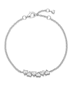 Fall in love many times over with the Sparkling Endless Hearts Chain Bracelet. This tennis bracelet-inspired design features six heart-shaped clear cubic zirconia set in alternating directions. A small heart-shaped stone dangles beside the lobster clasp to add extra sparkle. Wear it on its own or stack bracelets of different colours and metal finishes for a modern look.