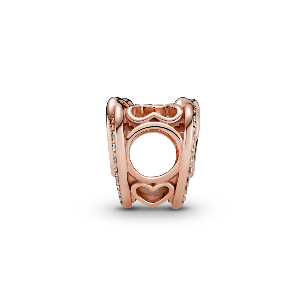 Gift a symbol of your love with the Sparkling Entwined Hearts Charm. Hand-finished in Pandora Rose (14k rose gold-plated unique metal blend). this design includes intertwining polished Pandora Rose hearts and sparkling stone-embellished hearts on the front and back. Entwined hearts also feature on the sides. Inspired by the famous love story of Romeo & Juliet. present this detailed openwork charm to someone special for Valentine’s Day.