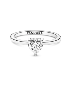 The latest addition to our solitaire collection. the Sparkling Heart Solitaire Ring features a heart-shaped clear cubic zirconia as the centrepiece. The Pandora logo is engraved on the inside of the polished shank. Stack this ring with other sterling silver pieces for a monochromatic look or mix metal finishes to make a unique statement.