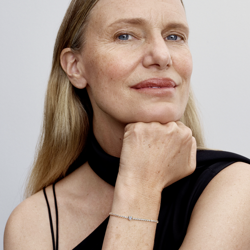 Heart 14k gold-plated bracelet with clear cubic zirconia