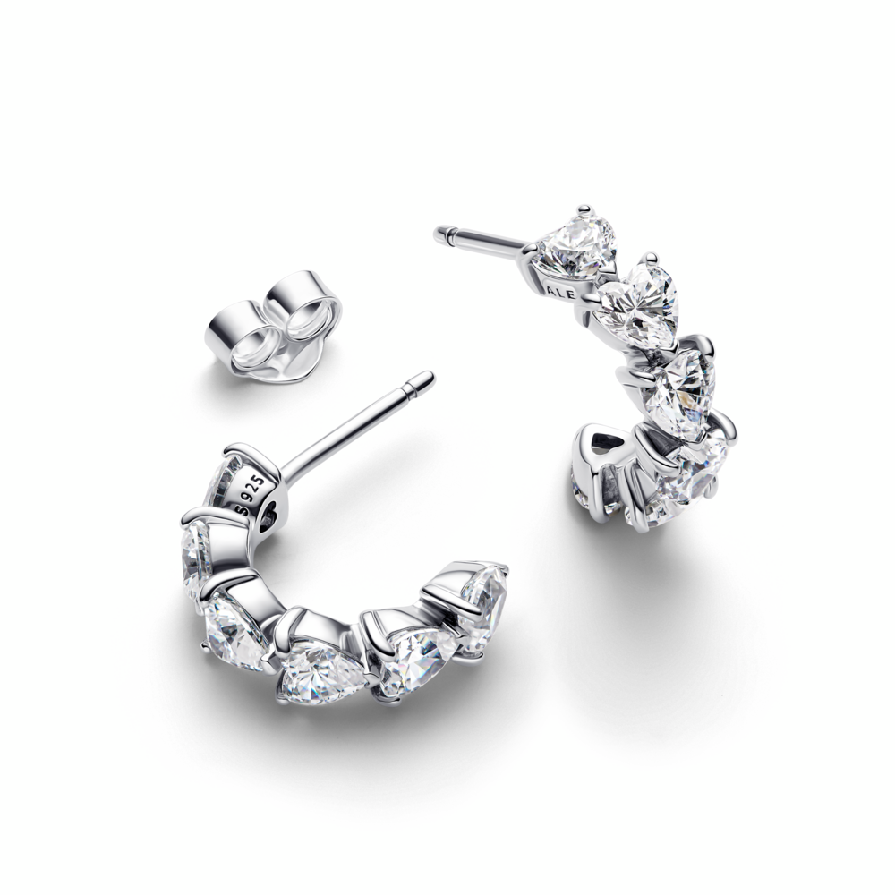 Hearts sterling silver hoop earrings with clear cubic zirconia