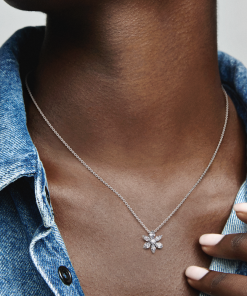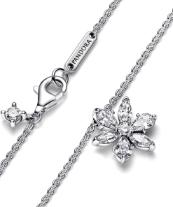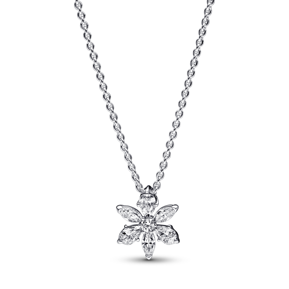 Bring the beauty of nature to your jewellery with the Sparkling Herbarium Cluster Pendant Necklace. This sterling silver necklace features a cluster of alternating pear and marquise-shaped stones around a round centre stone. forming a geometric shape inspired by petal and leaf elements. An elegant reinterpretation of the shapes we find in nature. this necklace is perfect for bringing a delicate. floating feel to your looks.