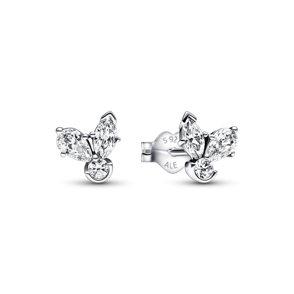 Bring the beauty of nature to your jewellery with our Sparkling Herbarium Cluster Stud Earrings. These sterling silver studs feature a pair of marquise-cut and pear-shaped stones around a round centre stone. forming a geometric shape inspired by petal and leaf elements. An elegant reinterpretation of the shapes we find in nature. these sparkling studs are perfect for bringing a delicate feel to your everyday looks.