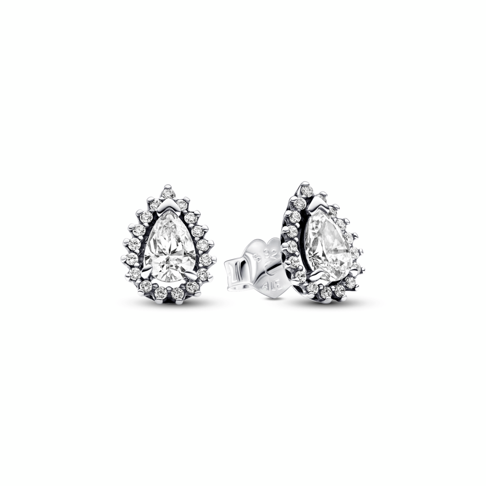 Sparkling Pear Halo Stud Earrings