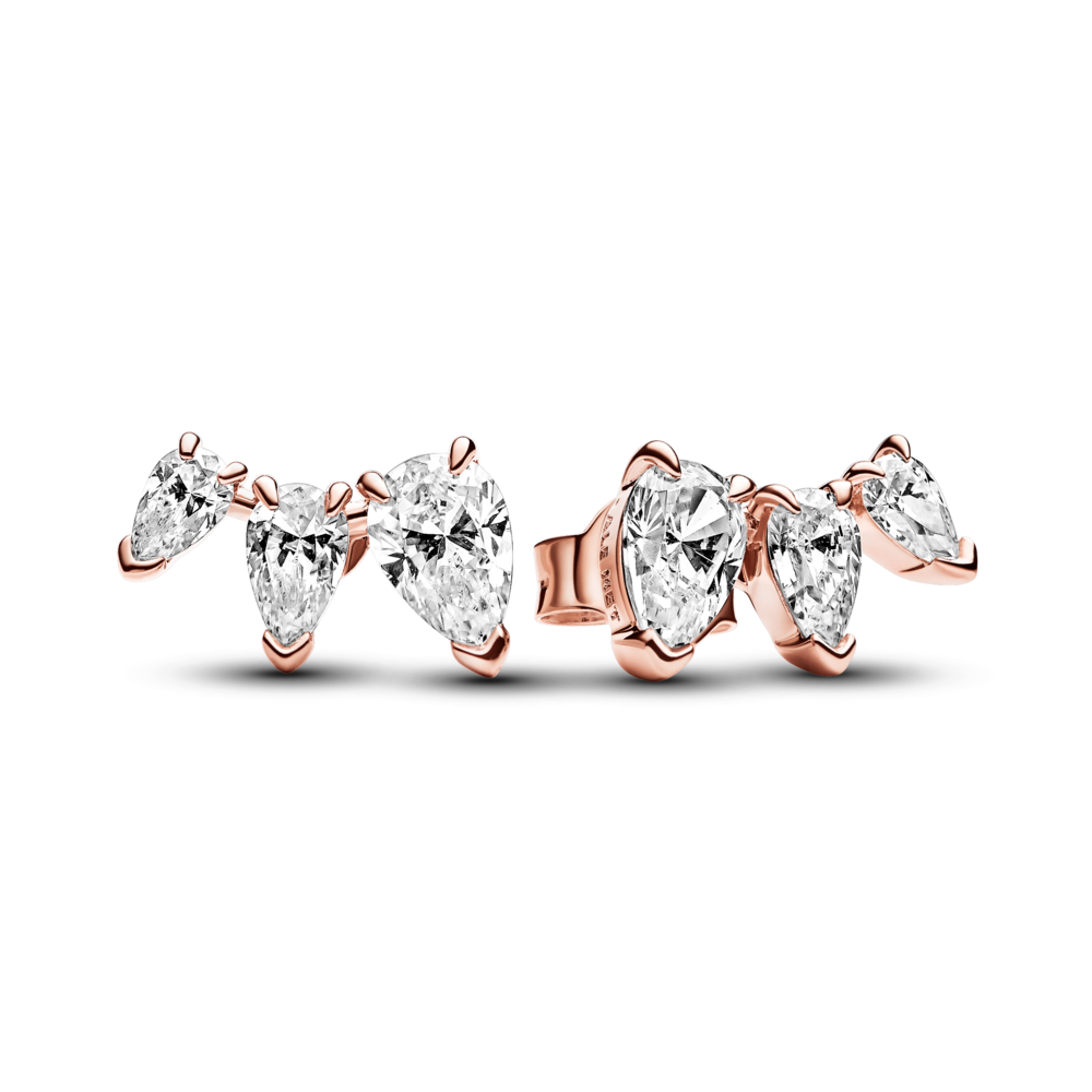 14k Rose gold-plated stud earrings with clear cubic zirconia