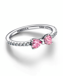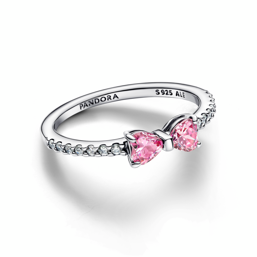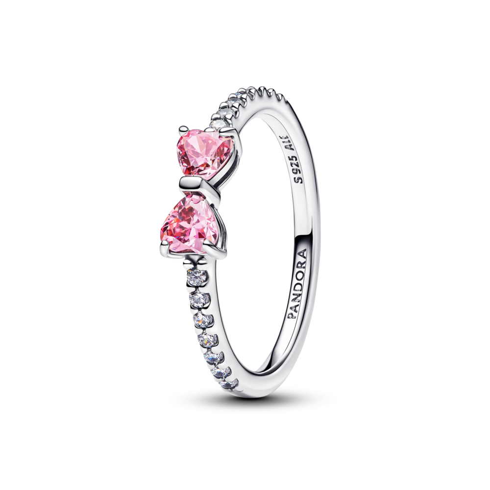 Bow sterling silver ring with fancy pink and clear cubic zirconia