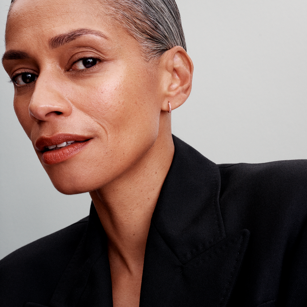14k Rose gold-plated huggie hoop earrings with fancy fairy tale pink cubic zirconia