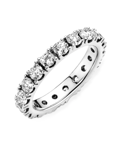 Make a classic statement with the Sparkling Row Eternity Ring. Hand-finished in sterling silver. this eternity ring features a band inlaid with sparkling clear man-made cubic zirconia. The design looks equally beautiful worn solo or stacked with other rings. Style it with bands in similar tones to create a monochromatic look. or go for contrasting metals for a combination that pops. This ring is designed to be a wardrobe essential for years to come.