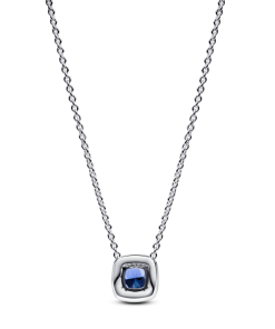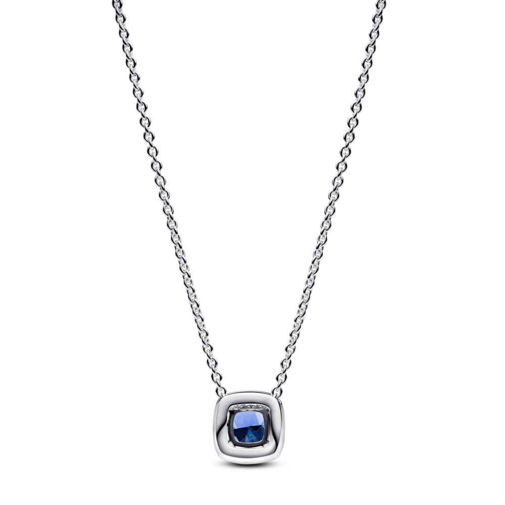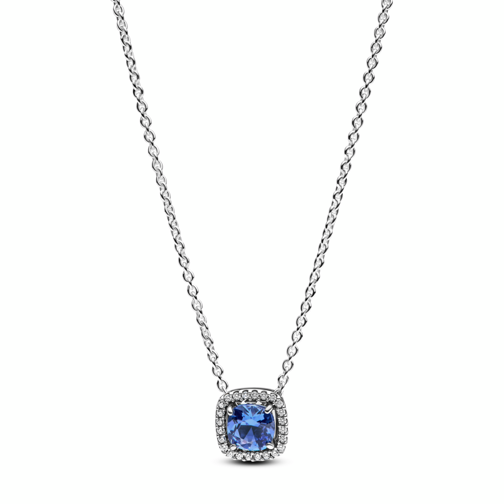 Sparkling Square Blue Halo Pendant Necklace