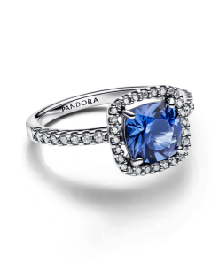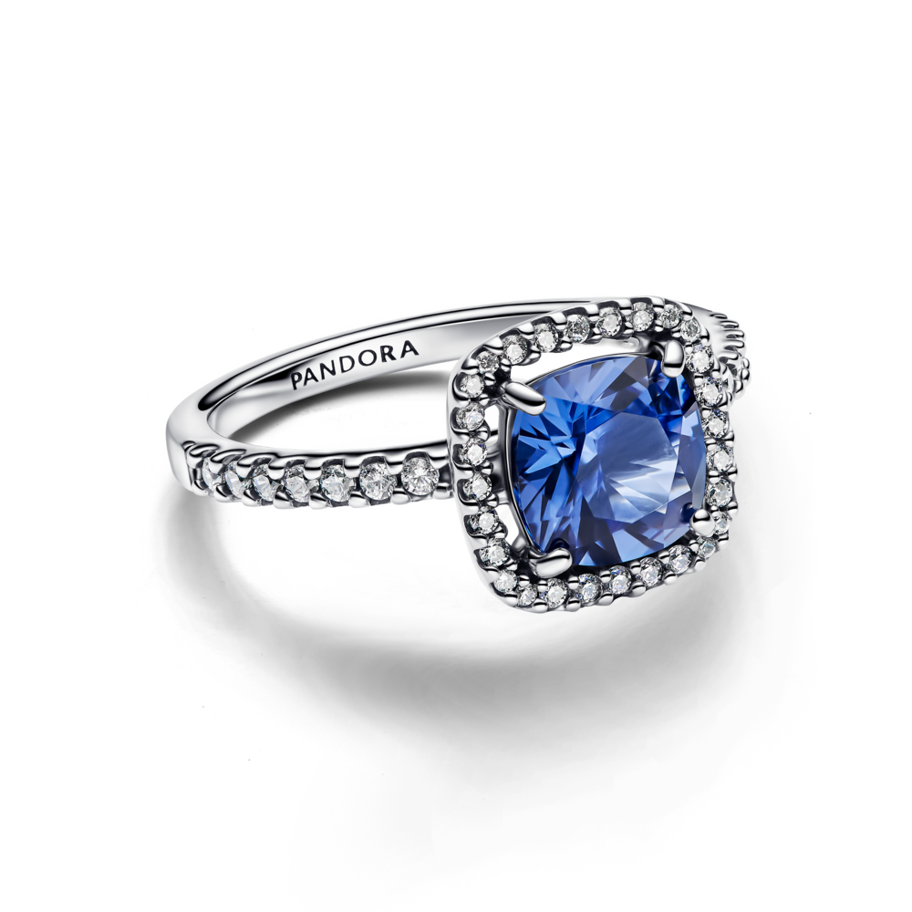 Sterling silver ring with cornflower blue crystal and clear cubic zirconia