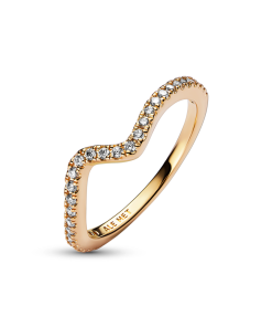Special features: ring band with a wavy shape at the top; row of pavé along the wave; 1/3 of the ring band is polished on all sides; functional holes for stone setting on the back of the row of pavé.