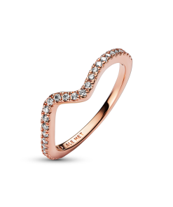 Special features: ring band with a wavy shape at the top; row of pavé along the wave; 1/3 of the ring band is polished on all sides; functional holes for stone setting on the back of the row of pavé.