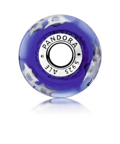 This hauntingly beautiful Murano glass charm is set on a sterling silver core. Inspired by the sky at night. layers of blue-hued glass and iridescent sheen are punctuated with delicate white glass stone-studded stars.