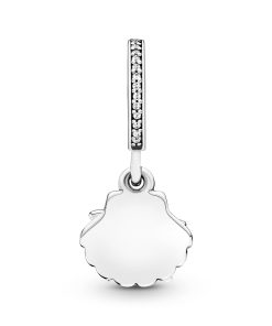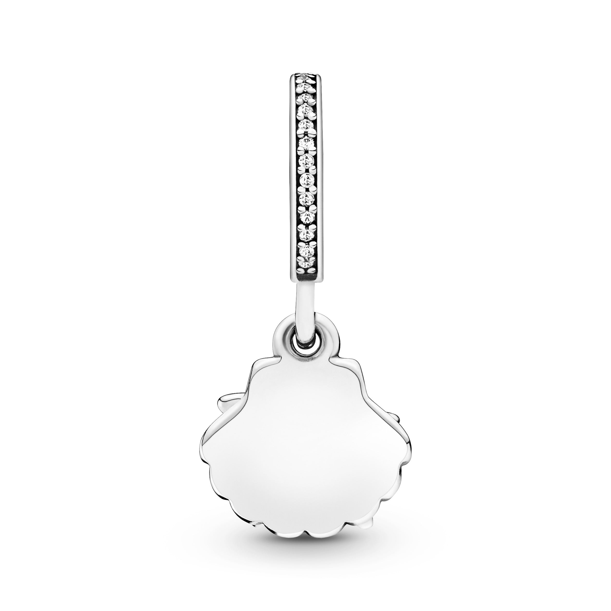 Perfect for those who have an affinity to the sea. channel your inner mermaid with our starfish and shell dangle charm for Pandora Moments bracelets. Cast from sterling silver. the dainty dangles are suspended from a stone-embellished bail: the starfish is detailed with beading and blue cubic zirconia. and the shell is finished with grooves on one side.
