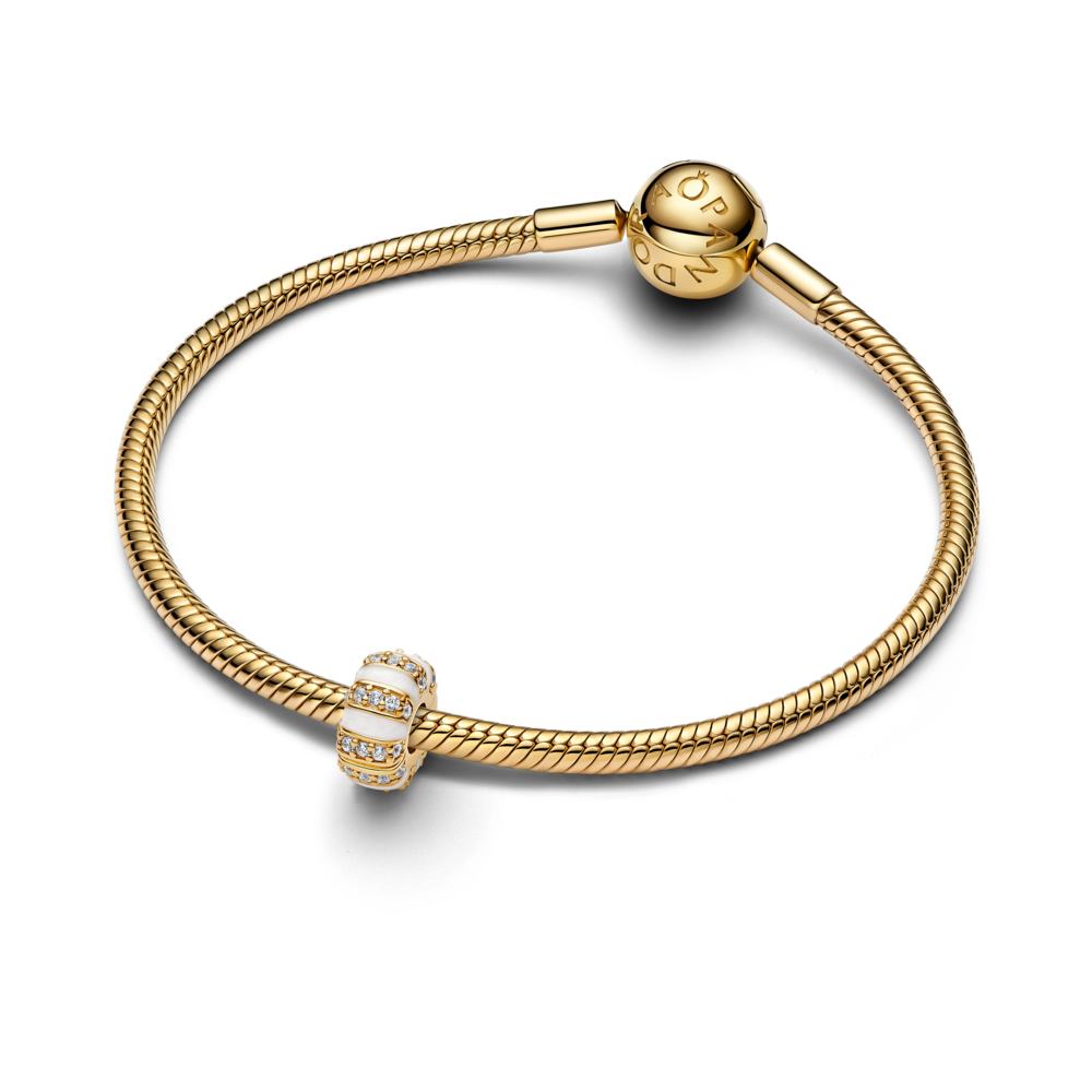 14k gold-plated clip with clear cubic zirconia. shimmering white enamel and silicone grip
