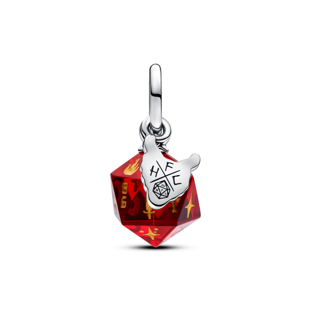 Project Red dice sterling silver dangle with red Murano glass and shimmering golden enamel