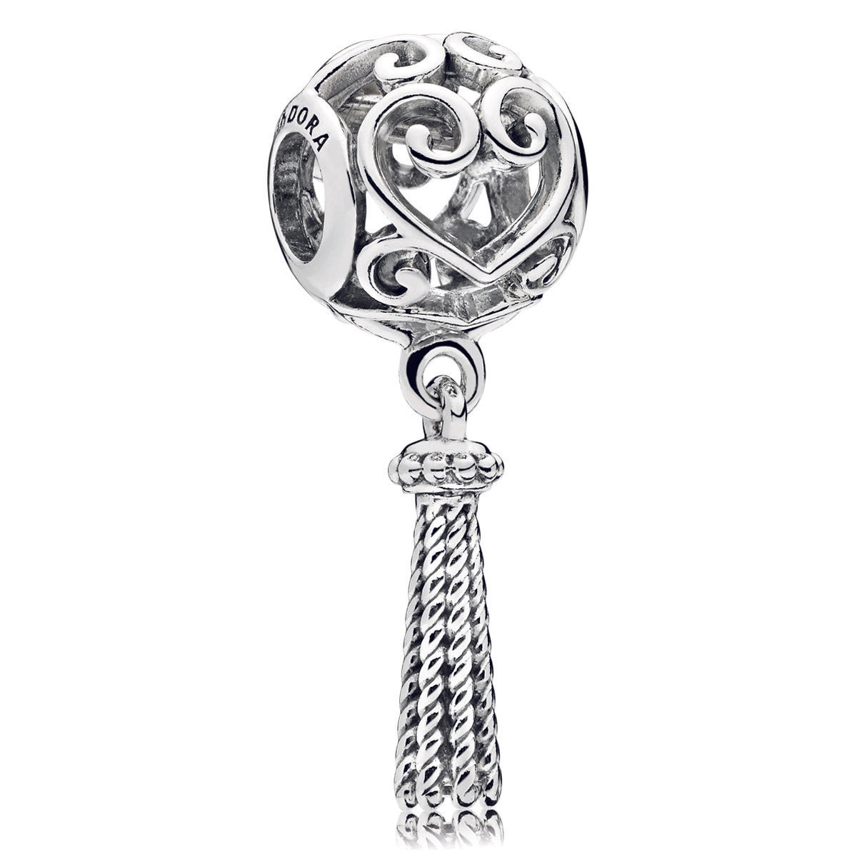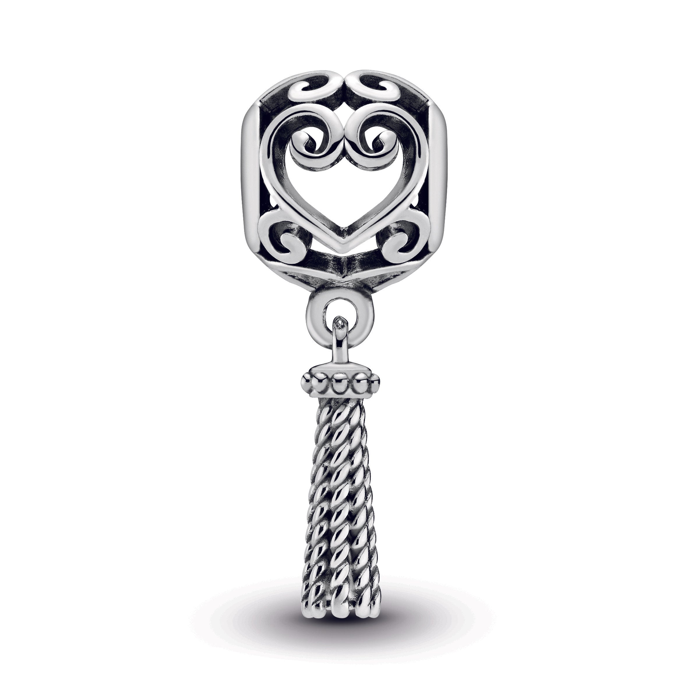 Channel bohemian sensibilities with fairy tale edge with fringes and fronds. This dangle charm is shaped with swirling hearts and a defining tassel that swishes with your every move. It’s been carefully hand-finished from sterling silver. Wear it on a Pandora Moments bracelet or bangle or thread on a favourite necklace as an alternative to a pendant. Your style gives it meaning.
