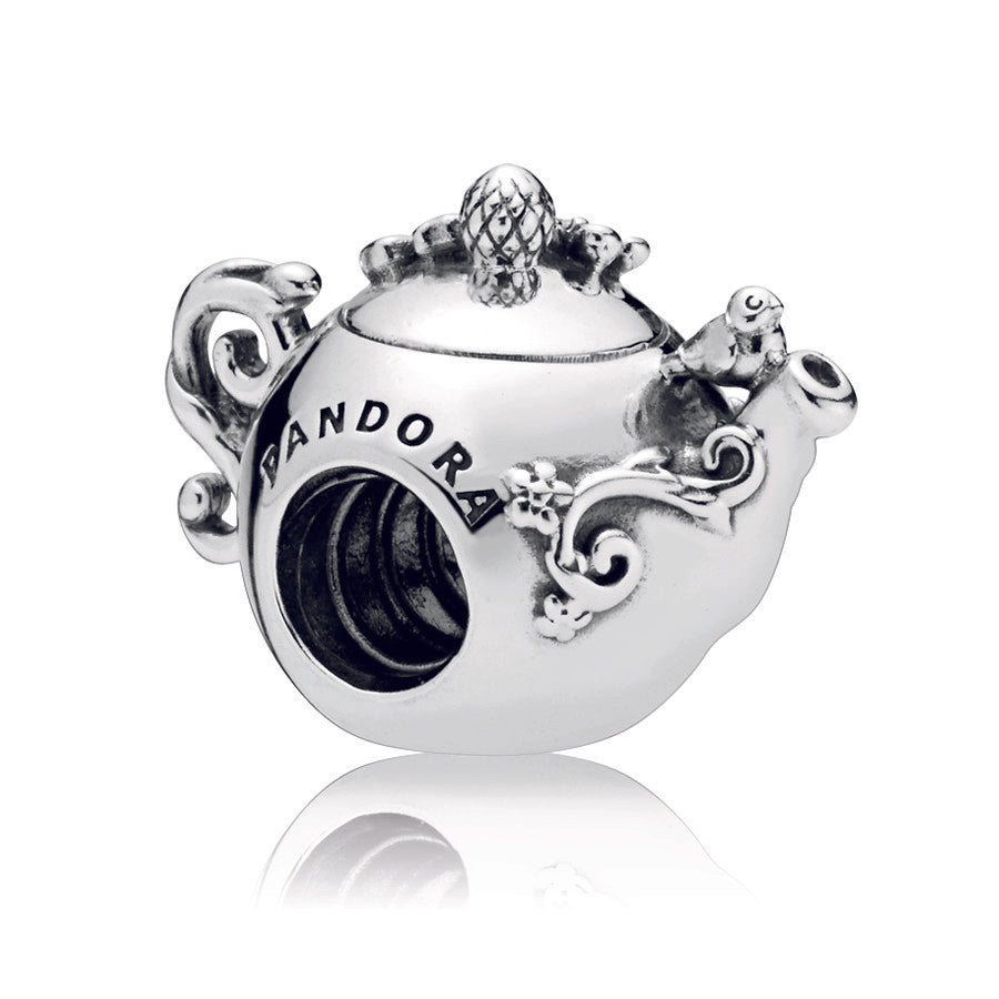Add a little fairy tale magic to your look with this enchanted teapot. Decorated with miniature pink enamel flowers and swirling branches. this sterling silver charm features a little bird on the spout and powder pink touches. It’s made for wear on our Pandora Moments bracelets. to show the story of the things you love.