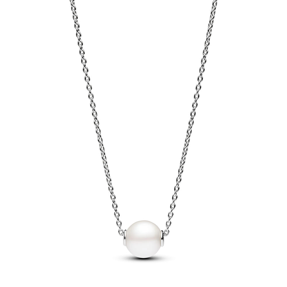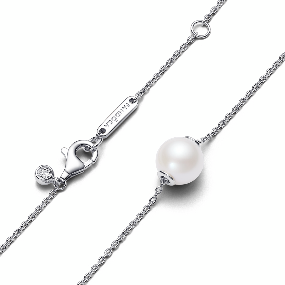 Sterling silver collier with white treated freshwater cultured pearl and clear cubic zirconia