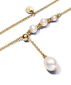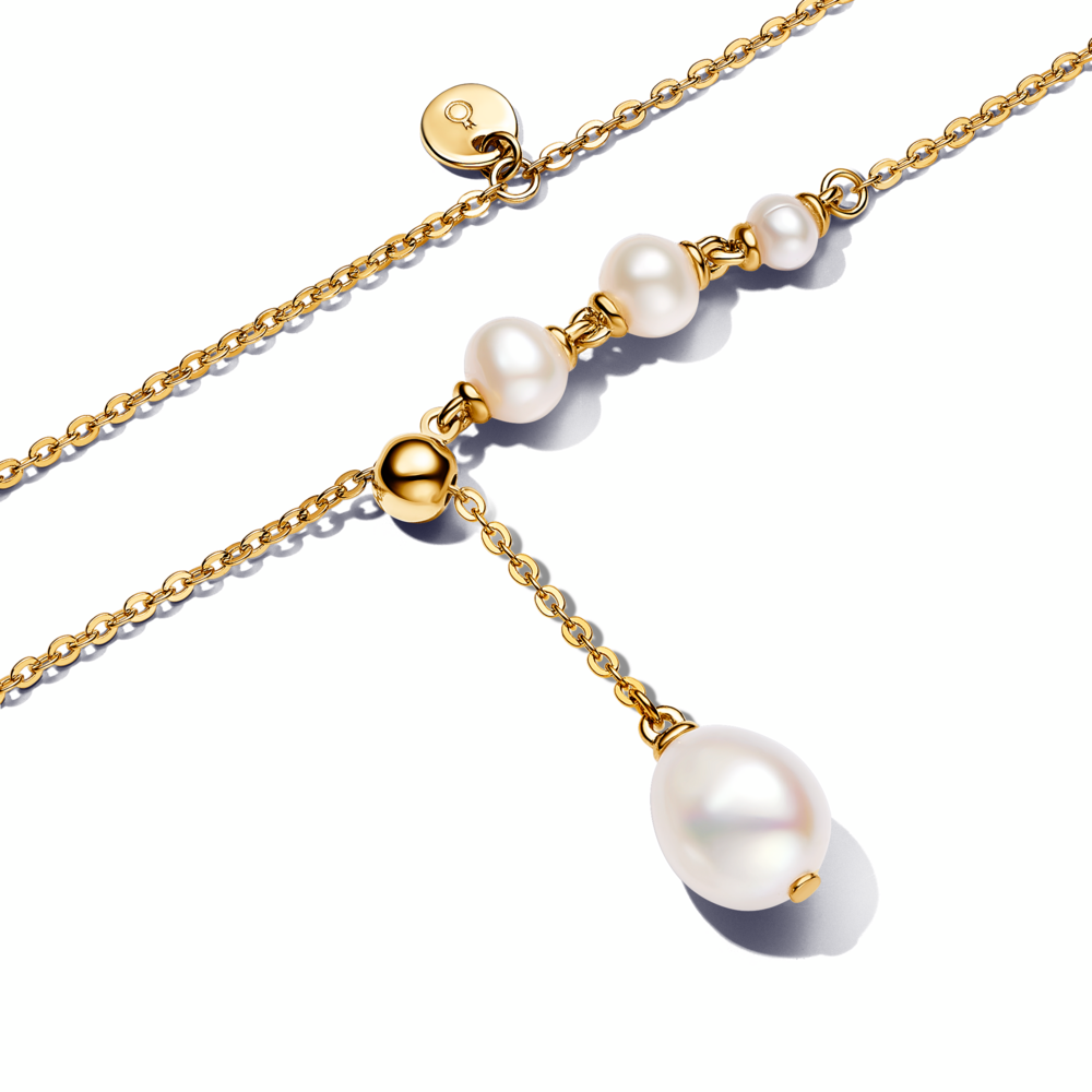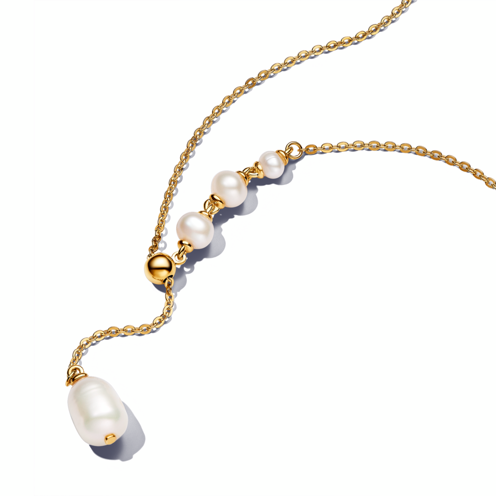 14k Gold-plated drop necklace with white treated freshwater cultured pearl and sliding clasp