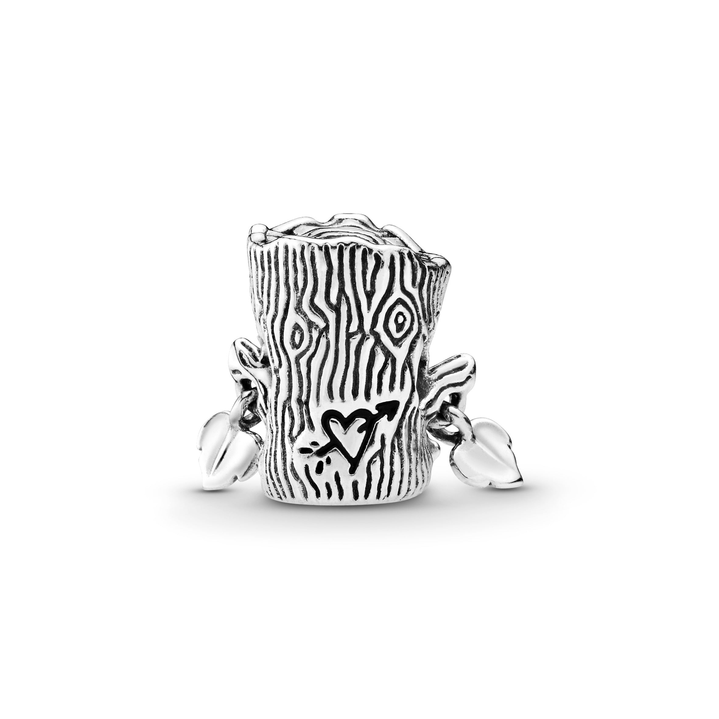 Who can resist the charm of this sweet Pandora Moments tree stump charm with its green eyes and kind smile? Hand-crafted in sterling silver. this kind woodland tree monster was inspired by magical creatures in an enchanted forest. It features a bark-like texture. dangling leaves. and a heart and arrow tattoo in black enamel on the back. The mischievous but cute monster charm makes an adorable companion to the rest of your collection.