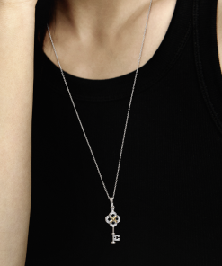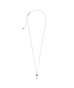 Make an elegant statement with the Two-tone Key & Flower Necklace. Featuring a simplified marquise-shaped 14k gold flower with a raised bead centre and sterling silver levelled circles. this necklace with its classic key shape expresses sleek. polished sophistication. Inspired by floral shapes and circles formed by intersecting iconic Pandora monograms. this sterling silver chain necklace will bring a modern yet regal finishing touch to any outfit or occasion.